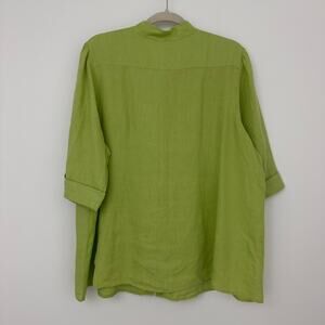 Deane White Womens 1X 100% Linen Green Button Up Shirt 1/2 Sleeve Fall Workwear