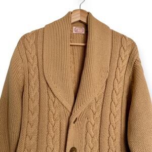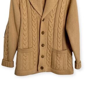 Deans Of Scotland Wool Cable Knit Shawl Collar Elbow Patch Cardigan Men's M