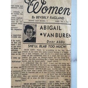 This is a cutout from a Roswell NM newspaper. Dated Friday, February, 17, 1967. The Dear Abby column is pretty entertaining and comical
