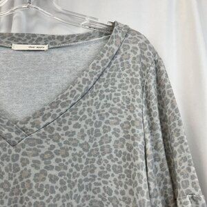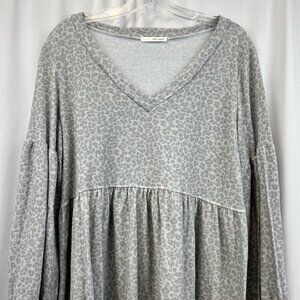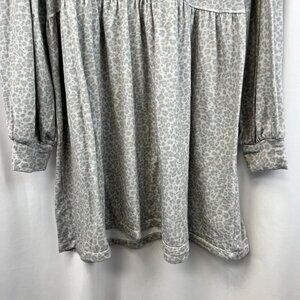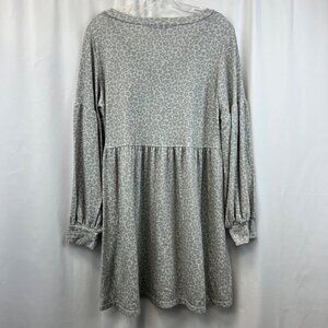 Dear Apple Womens V-Neck A-Line Gray/Beige Leopard Print Dress Cuff Sleeve M