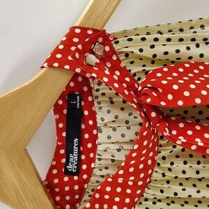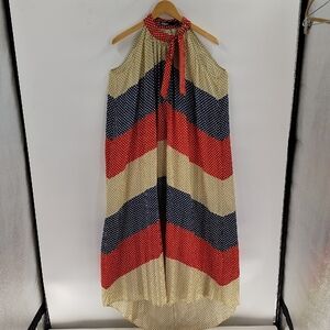 Dear Creatures Anthropologie large color block halter dress multi polka dots