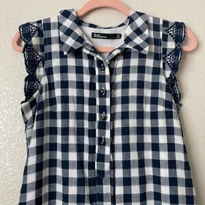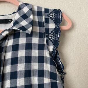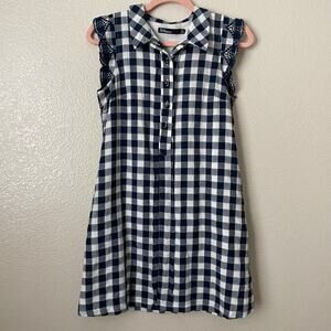 Dear Creatures Dress Womens XS Blue Mini Gingham Check Embroidered Retro Cottage