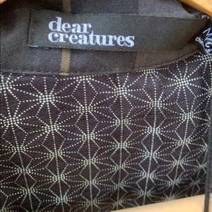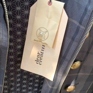 Dear Creatures plaid cape jacket with hood that you can detach. Distressed buttons which I believe were intentional though I really can’t remember, and never wore it. Either way they look cool and add to the character of this piece. I bought it in NYC ages ago. It’s been stored in a closet for a decade so I recommend dry cleaning before wearing. I’m clearing out a closet of coats and jackets I haven’t worn.