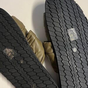 Dear Frances Olive Knotted Authentic Leather Slide Sandals