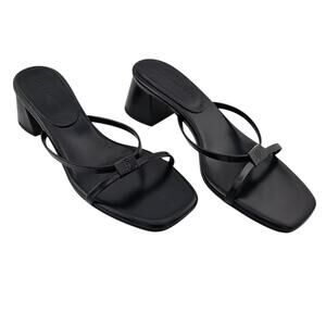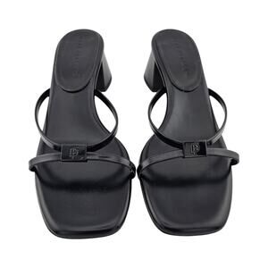 Dear Frances Patti Heel Strappy Sandal Size 37 US 7 Black Leather Slip On