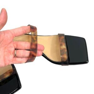 Dear Frances Rain Sandal Leopard Tortoishell Two Strap Mules Kitten Heels Size 37