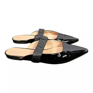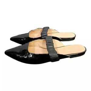 Dear Frances Slide Flats Pointed Toe Black Leather Women's 36/US 6