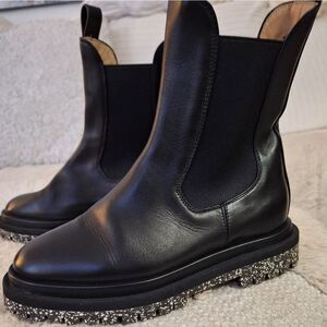 Dear Frances Sz 35 or 4-5 US Nearly New, black, supple leather, Italian made boots, speckle pattern soles, worn once, minor wrinkles from storage, Super lux