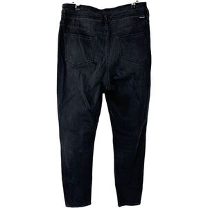 Classic five-pocket design. The jeans have a slightly faded wash, giving them a subtle worn-in look, while still maintaining a sleek, modern style. The waistband includes belt loops, and the jeans are secured with a button and zipper closure. The dark color and versatile cut make these jeans suitable for casual everyday wear or a dressed-up evening look.