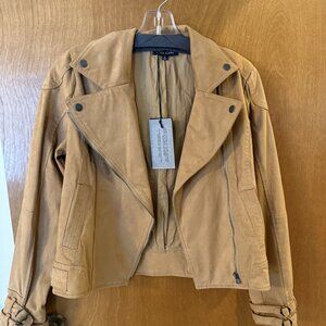 Dear John Celeste Moto Jacket Faux Suede Size Small Dark Tan Buckles NWT