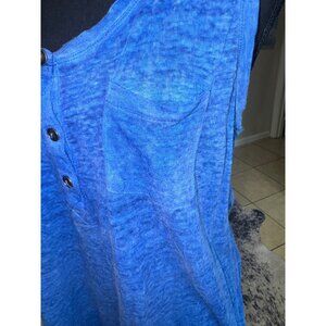 Dear John Cobalt Blue 100% Linen Tank Top Button Size L Beach Nautical Resort