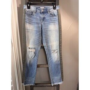 Dear John "Erin Slim Straight" Jeans Distressed Women’s Size 26 Striped Sides