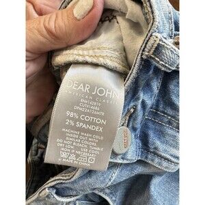 The Dear John "Erin Slim Straight" Jeans in Women's Size 26 feature a stylish distressed look with striped sides, making them a trendy and versatile choice for any season. These slimming jeans are made of a comfortable cotton spandex blend with a mid-rise and 27-inch inseam, offering a flattering fit for everyday wear. The 5-pocket design and zip closure add practicality to this fashion-forward piece, perfect for the modern woman looking to rock a stylish denim statement.