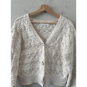 Dear John Jade Pointelle Jewel Button Down Cardigan Boho Coquette Feminine L