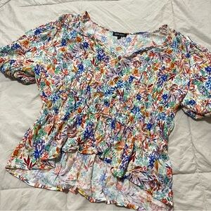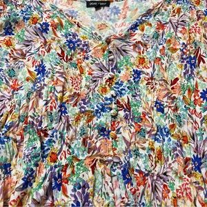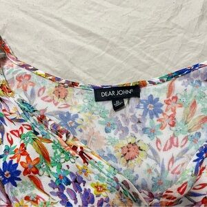 Dear John Multicolored Floral Bubble Puff Sleeve V-neck Blouse Women’s Size XL