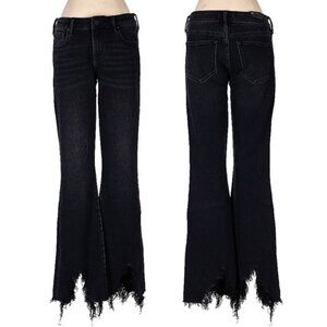 Dear John ROSIE MID RISE FLARE CLAYTON JEANS sz 27 NWT Black Ripped Hem Distress