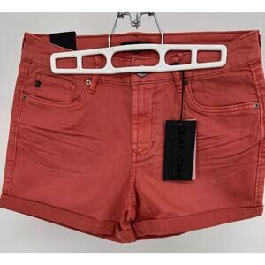 Dear John Womens Denim Classic Fit Mid Rise Chino Shorts Rolled Hem Size 28 Red