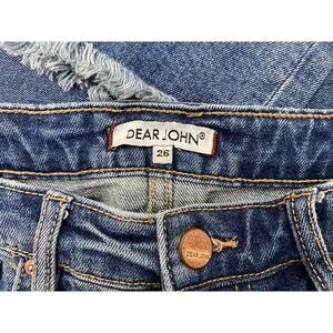 Dear John Women's Straight Leg Raw Hem Stretch Denim Jeans Distressed 26 Modern