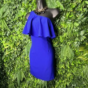 Dear Moon Women Size 3 Blue Dress Formal Mini Pencil One Shoulder Party 0656