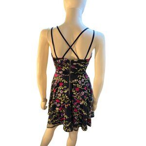Dear Moon Floral Embroidered Fit & Flare Zipper Back Navy Mini Dress Size 3 EUC