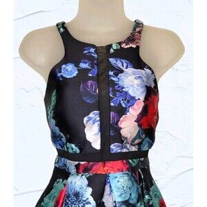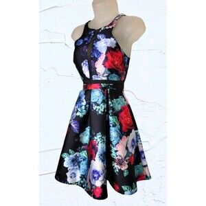 Dear Moon Junior 3 Floral A-Line Mini Dress Black High Neck Formal Party Pockets