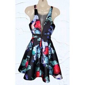Tags: romantic floral dress . Dear Moon party dress . junior semi formal outfit . black mini cocktail dress . dreamy floral A-line dress . cottagecore meets chic party style . wedding guest dress junior size . prom homecoming dance dress . floral print statement dress . classy girly aesthetic