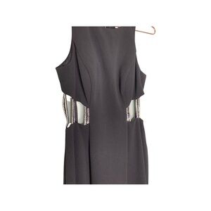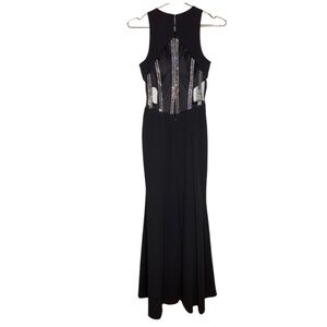 Sleeveless Round Neck Crystal Strap Back Solid Long Crepe Dress. Excellent used condition no flaws. Size 7. Armpit To Armpit 18 inches. Shoulder To Hem 60 inches.