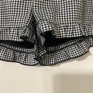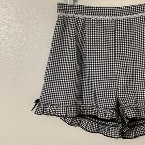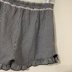 Dollette Preppy Feminine Aesthetic Black and White Houndstooth Pattern Lace Ruffle Hem Shorts with Bows