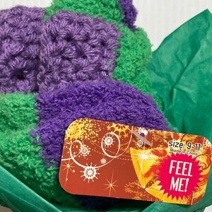 • Includes soft, cozy green fuzzy socks with purple accents