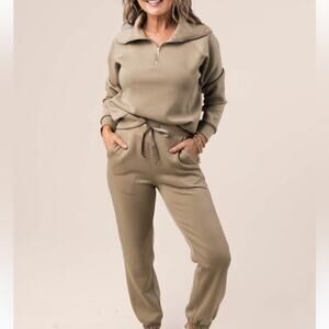 New with tags (NWT) Dear Scarlett Day Trip joggers. Women's size large, these bottoms are a great neutral option for a casual or athleisure look in sage green. This piece was designed with a matching pullover to be worn as a two-piece matching travel set. ****The Hamptons sage green 1/4 zip pullover in size large are also available in my closet.***