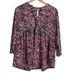 Vibrant and stylish, this multicolor patterned top is perfect for any occasion. Its eye-catching design adds a pop of color to your wardrobe.
