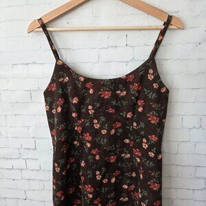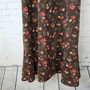 Dear YN Corduroy Floral Dress Size S / 4 Brown Midi Fall Sheath Spaghetti Strap. Very good pre-owned condition, no flaws. Does not have a size tag, please compare measurements.