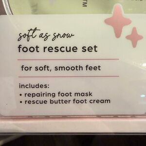 Pamper yourself or treat someone with a rescue foot mask and foot cream. Featuring a soothing green and cream color scheme, this set includes a repair and color control foot mask and a deep moisture foot butter. Perfect for gentle skin care.