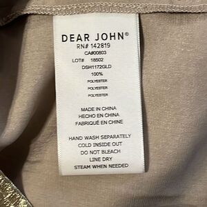 This shirt is made by Dear John. It’s a gold metallic button front with puff 3/4 length sleeves. Worn once and in wonderful condition. Size medium. Color is closest to the stock photo.