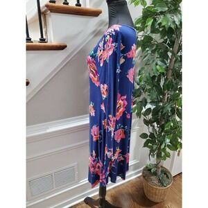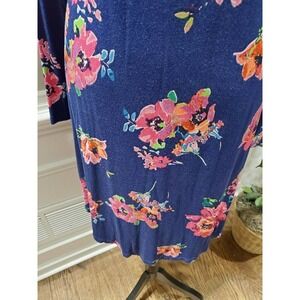 Dearcase Women's Blue Floral Rayon V-Neck Long Sleeve Knee Length Dress Size M