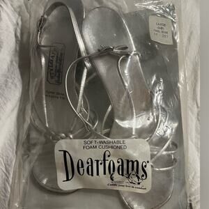 Dearfoam Womens Slippers Size 8.5 House Shoes Silver Heel Strap Vintage Slippers