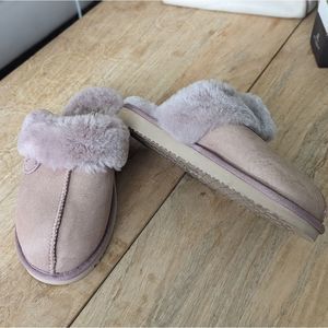 Soft and comfy shearling slippers. 100% wool shearling and suede. Dusty gray pink mauvy color. luxuriously fluffy!