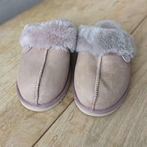 Dearfoam fireside Sydney shearling 100% Wool dusty pink slides 41/10