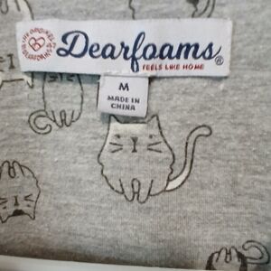 Dearfoams Cat Print Gray Button-Up Nightshirt Women's Medium Cozy Loungewear