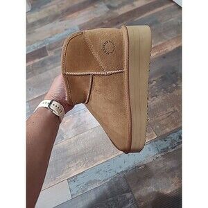 Dearfoams Fireside Size 10 Women’s Genuine Shearling - Suede Platform Bootie