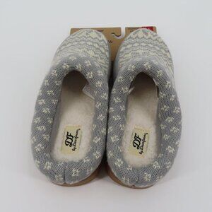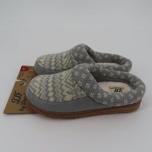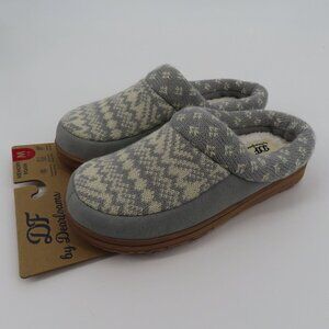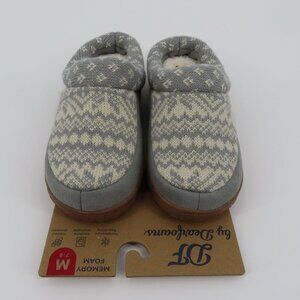 Dearfoams Medium 7-8 Gray Sweater Knit Indoor Outdoor Memory Foam Slippers NEW
