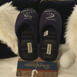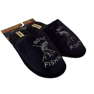 Dearfoams Mens Cozy Comfort Memory Foam Gone Fishin Slippers Size S 7/8 Blue