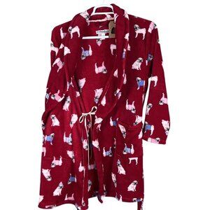 Dearfoams NWT Unisex Adult L/XL Red Fleece Bath Robe Pug Dog Print Snuggly Buddy Belted Cozy Lounge