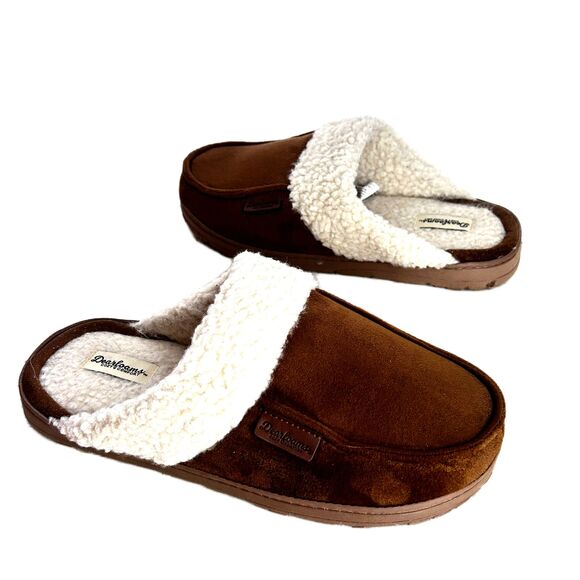 Dearfoams Slippers M Brown Faux Suede Sherpa Lining Shoes 9 9.5 10