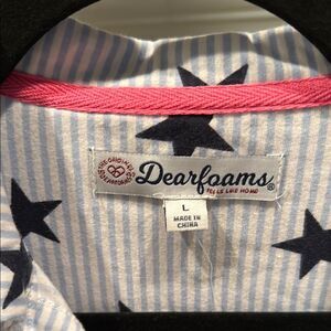 Dearfoams night shirt with star pattern. Features blue stripes and pink trim. New without tags.