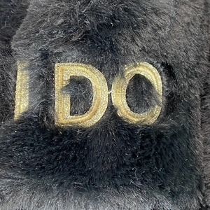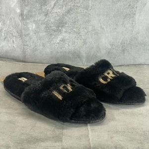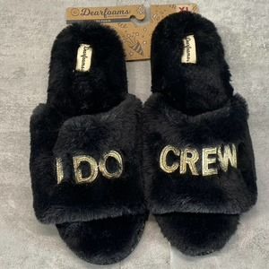 Dearfoams Women's Black Faux-Fur Memory Foam I do Crew Slide Slippers SZ XL