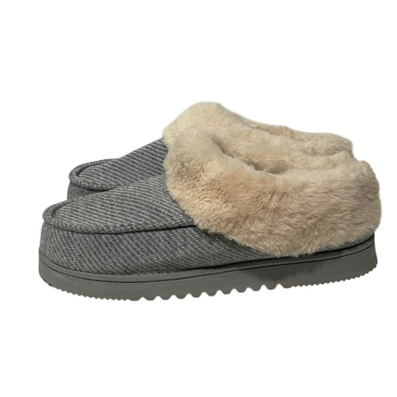 Dearfoams Women's Clog Slippers Gray Faux Fur Memory Foam Total Comfort L 9-10