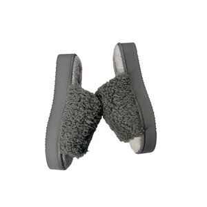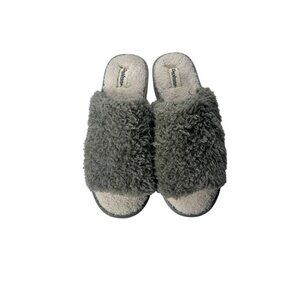 Dearfoams Women's Gel-Infused Memory Foam Slippers Sz XL Gray Plush Faux Fur NEW