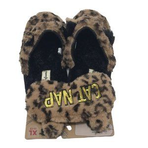 Dearfoams Womens Leopard Print Slipper w/ Eye Mask