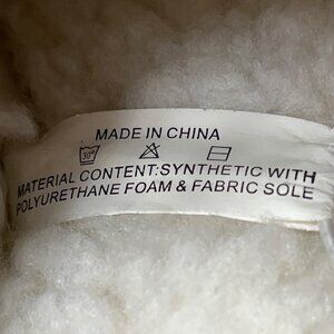 Cozy slip-on slippers featuring a soft suede-like exterior and plush faux sherpa lining for warmth. Durable fabric sole suitable for indoor use.